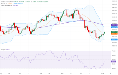 USD/CAD diperdagangkan melemah di awal 2026 dengan momentum terbatas. Analisis teknikal menunjukkan intraday bullish di atas EMA 200, sedangkan tren harian cenderung bearish; data PMI Kanada dan laporan pekerjaan AS-Kanada menjadi kunci arah pasangan